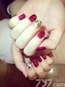 2. 酒红色:酒红色比正红色更加低调,给人一种成熟、优雅的感觉。搭配金色或者银色的装饰,让你的美甲更加高贵。